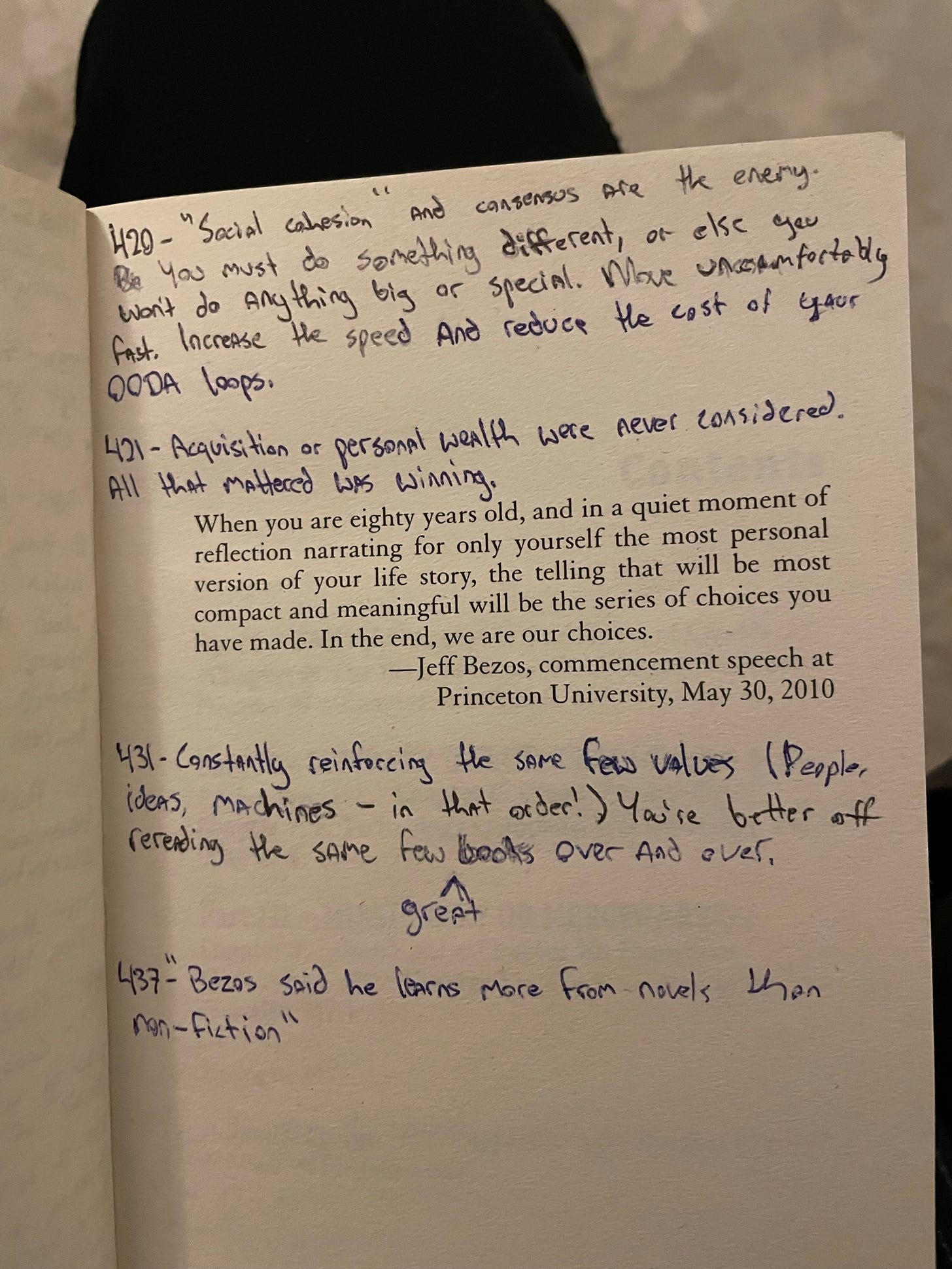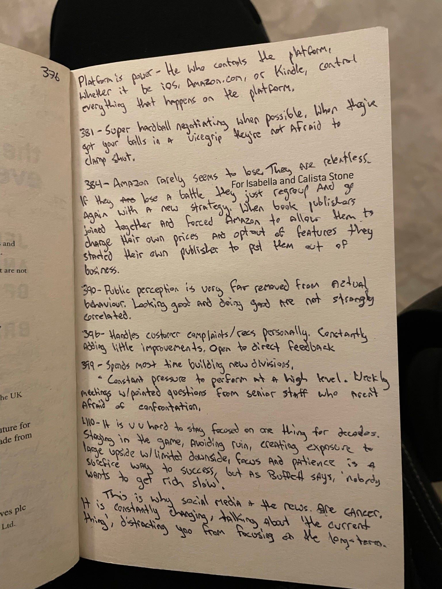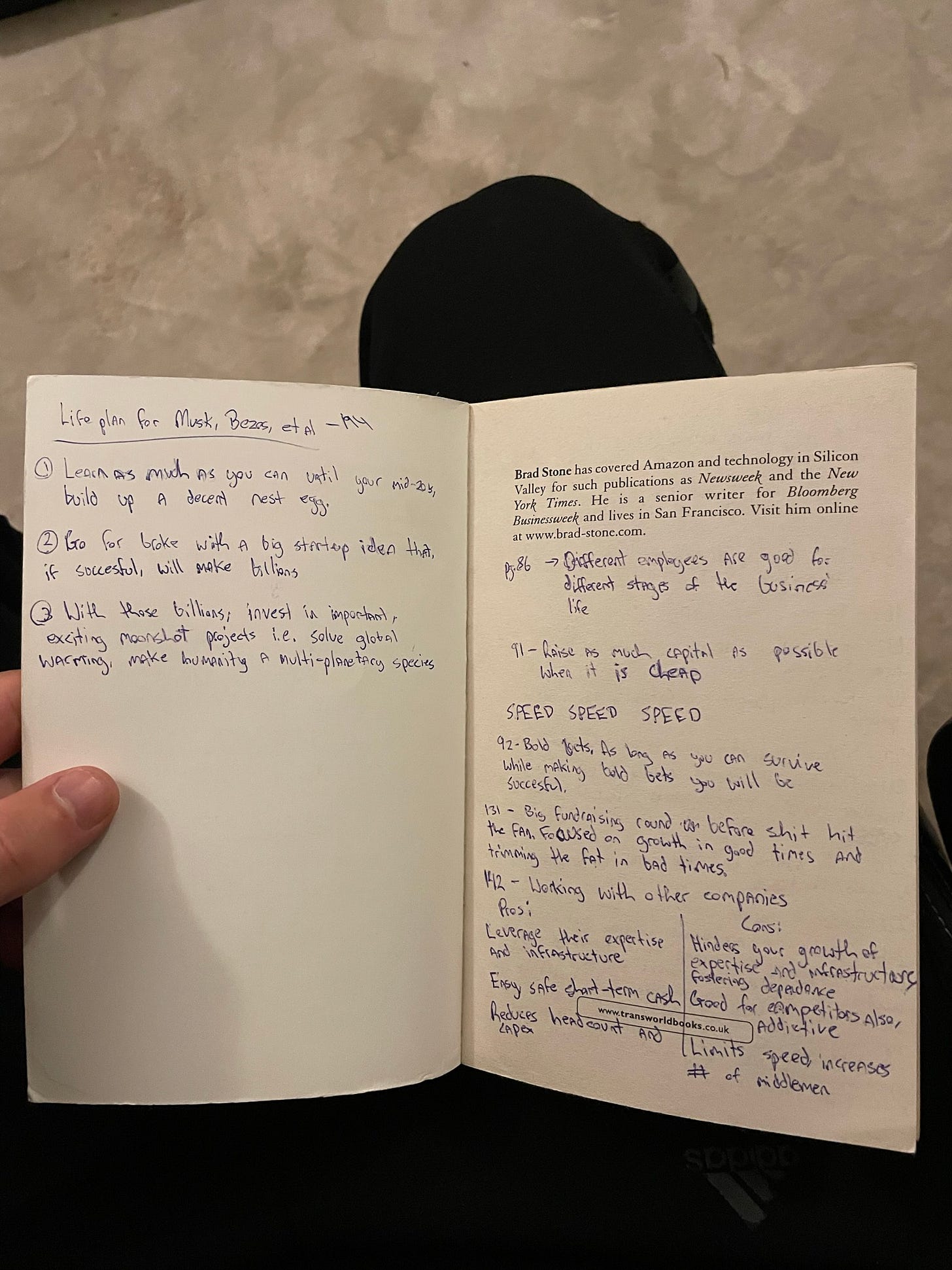 The book also focuses a lot on Bezos and talks about his parents, his childhood, his private life, and his other ventures, including Blue Origin. Despite being 10 years old the book is quite popular, and I found it prominently displayed in my local book store. These notes below were initially scribbled down in the first few pages as I read the book, and include some additional notes I just added. The page numbers correspond to the paperback version, because hardcover books are a rip off and a pain in the ass to read, though they are better to take notes on.